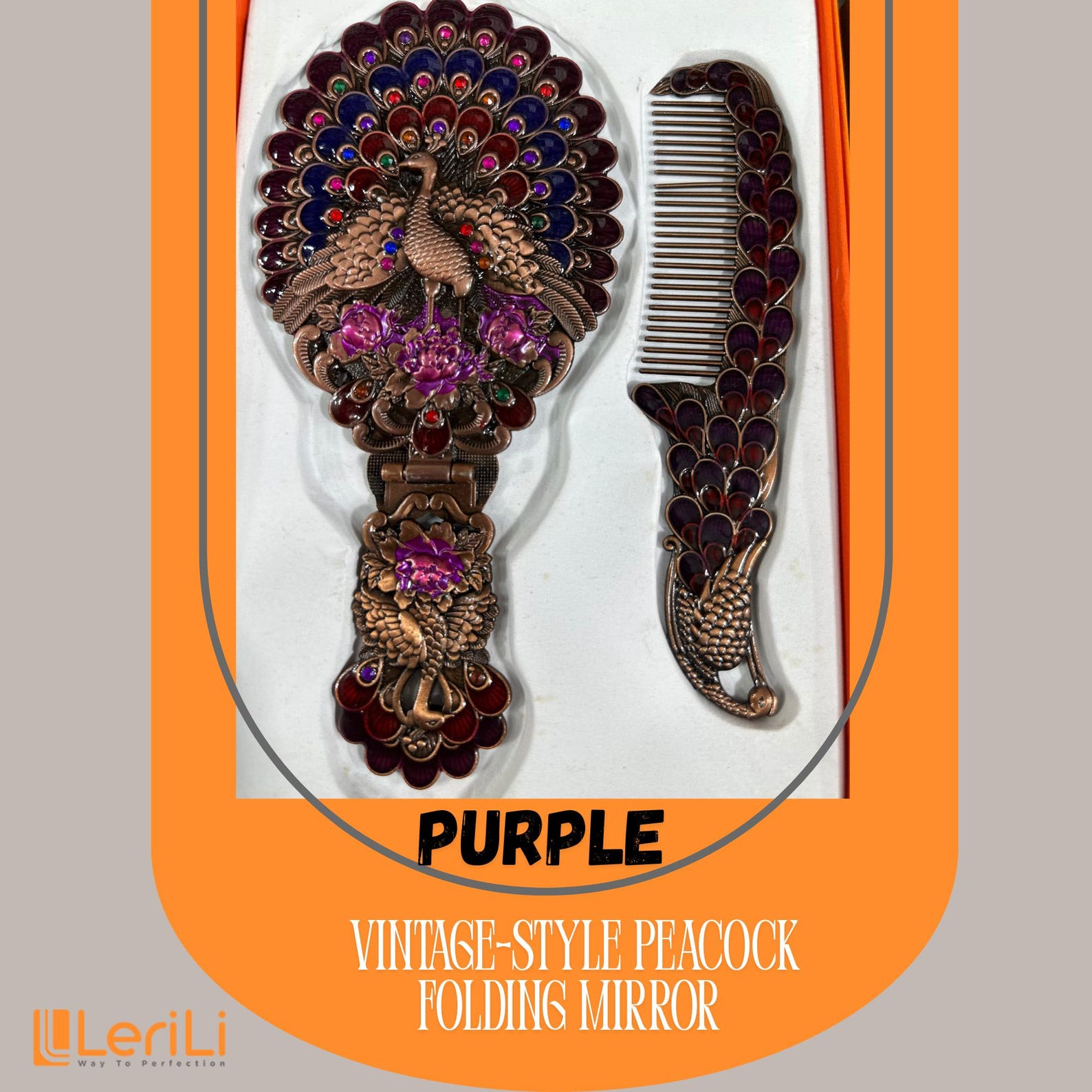 πͺ 6. Vintage Peacock Mirror + Comb Set